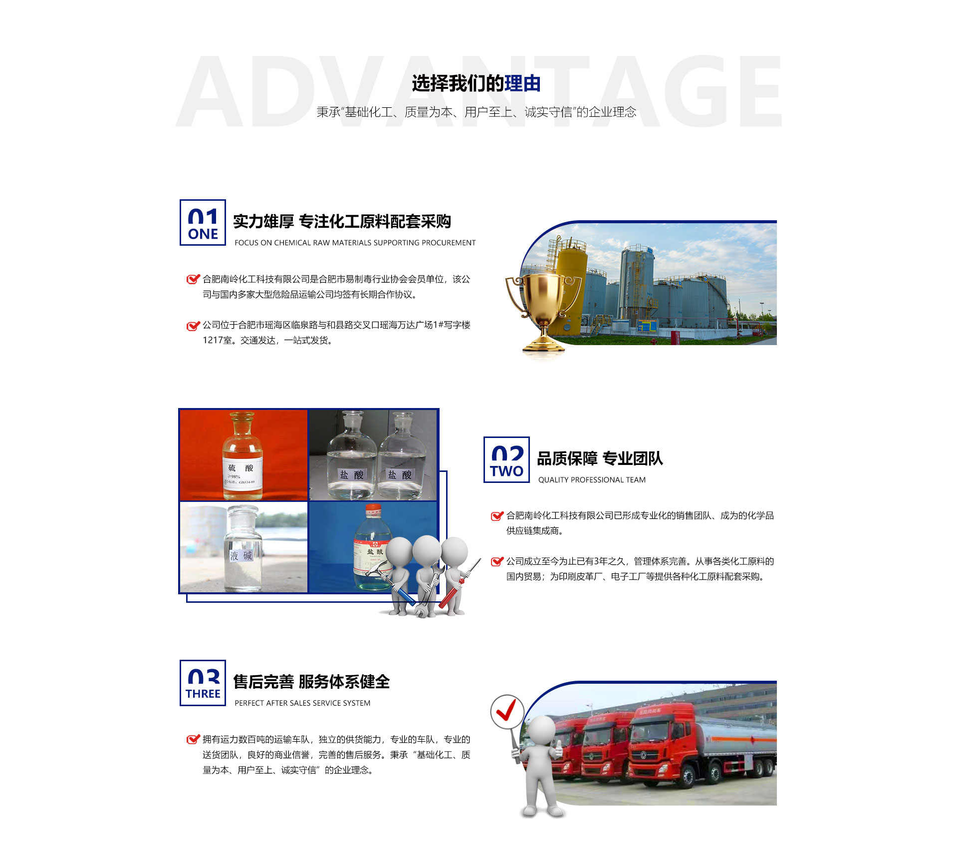 合肥南嶺化工科技有限公司是合肥市易制毒行業(yè)協(xié)會(huì)會(huì)員單位,該公司與國(guó)內(nèi)多家大型危險(xiǎn)品運(yùn)輸公司均簽有長(zhǎng)期合作協(xié)議,擁有運(yùn)力數(shù)百噸的運(yùn)輸車隊(duì),獨(dú)立的供貨能力,良好的車隊(duì)運(yùn)輸,有效的送貨團(tuán)隊(duì),良好的商業(yè)信譽(yù),完善的售后服務(wù)。秉承“基礎(chǔ)化工、質(zhì)量為本、用戶至上、誠(chéng)實(shí)守信”的企業(yè)理念。從事各類化工原料的國(guó)內(nèi)貿(mào)易;為各個(gè)化工廠、印刷皮革廠、電子工廠等提供各種化工原料配套采購(gòu)。目前,公司正朝著以貿(mào)易為基礎(chǔ)、以實(shí)業(yè)為依托,采購(gòu)、銷售,內(nèi)外貿(mào)一體化,上下游一體化,具有綜合增值能力和復(fù)合競(jìng)爭(zhēng)能力化工原料供應(yīng)商。本公司主要經(jīng)營(yíng)的產(chǎn)品有:鹽酸、硫酸、液堿、片堿等。合肥南嶺化工科技有限公司已形成服務(wù),售后一體化的團(tuán)隊(duì)、成為的化學(xué)品供應(yīng)鏈集成商。為客戶提供良好的服務(wù)及產(chǎn)品,本公司經(jīng)銷的各種產(chǎn)品不僅在安徽地區(qū)深受用戶好評(píng),而且具有很高的市場(chǎng)占有率,產(chǎn)品行銷各個(gè)地區(qū)。